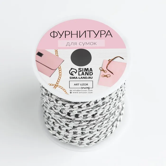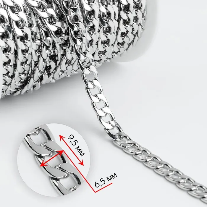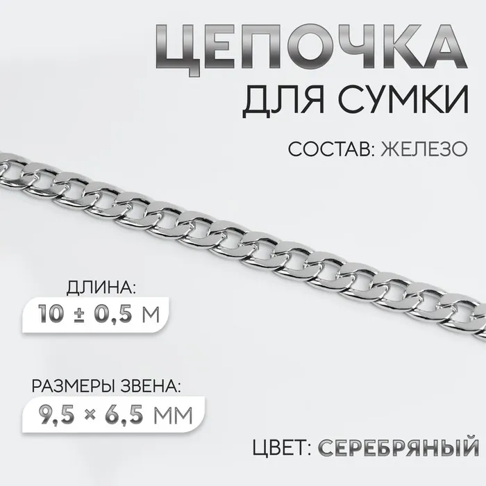 Цепочка для сумки, железная, 9.5×6.5 мм, 10±0.5 м, цвет серебряный — Характеристики