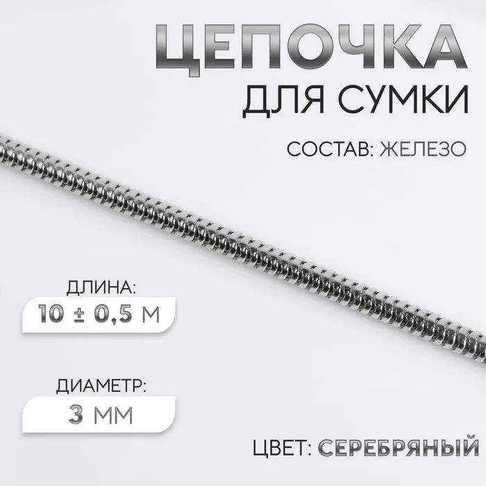 Цепочка для сумки, железная, d=3 мм, 10±0.5 м, цвет серебряный — Характеристики