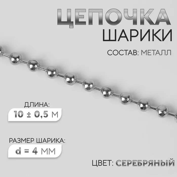 Цепочка для сумки, железная, d=4 мм, 10±0.5 м, цвет серебряный — Характеристики