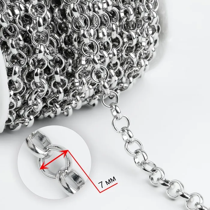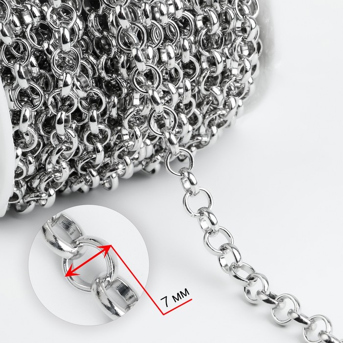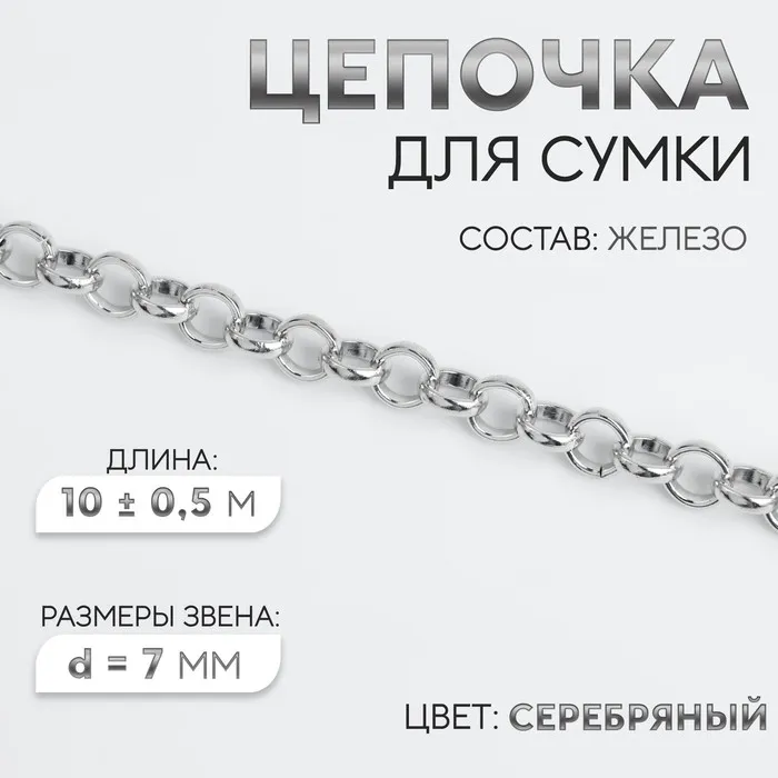 Цепочка для сумки, железная, d=7 мм, 10±0.5 м, цвет серебряный — Характеристики