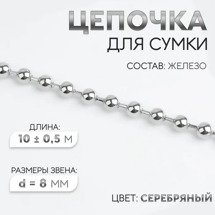 Цепочка для сумки, железная, d=8 мм, 10±0.5 м, цвет серебряный — Характеристики