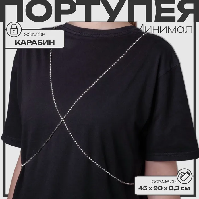 Портупея "Минимал" - стильный и универсальный аксессуар, который подчеркнет вашу индивидуальность и добавит изюминку любому образу. Эту портупею можно носить как под одеждой, так и поверх нее – она прекрасно смотрится с платьем, футболкой или рубашкой. Удобная застежка-карабин обеспечивает комфортное ношение, а универсальный размер позволяет адаптировать портупею к разным типам фигуры. Выполнена из бижутерного сплава, легкая и удобная. Незаменимый аксессуар для тех, кто хочет быть в центре внимания не только на пляже или вечеринке, но и в повседневной жизни. Прекрасный подарок для девушки, подруги или близкого человека.