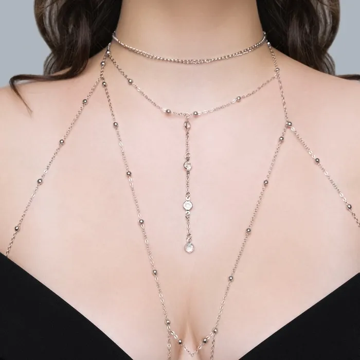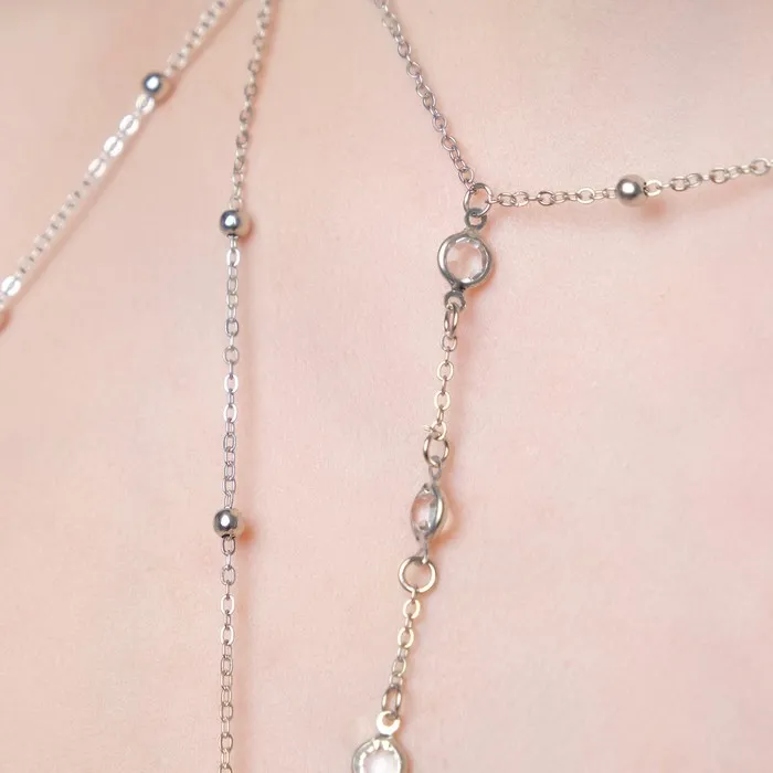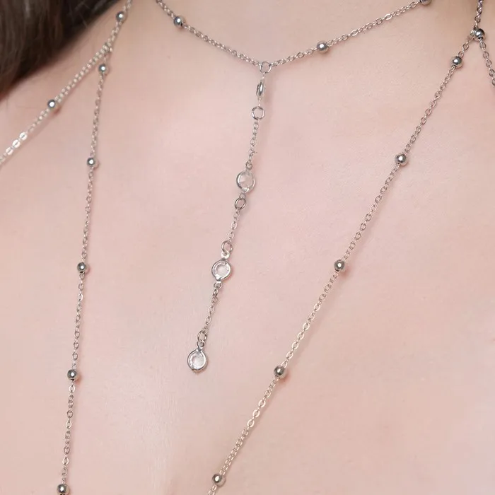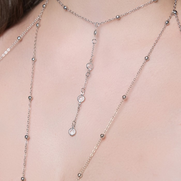 Цепочка на тело женская «Шарики» перекрест, белая в серебре — Характеристики