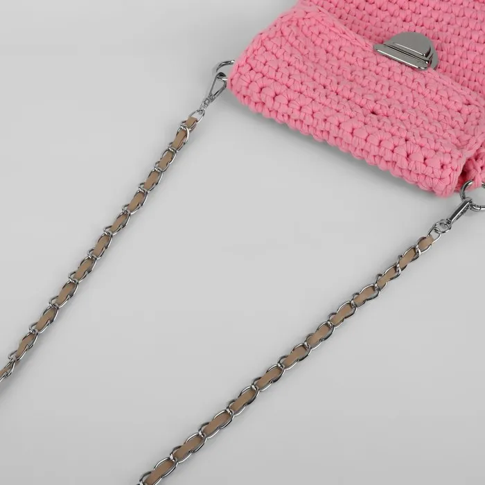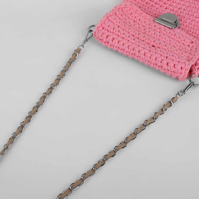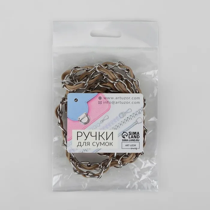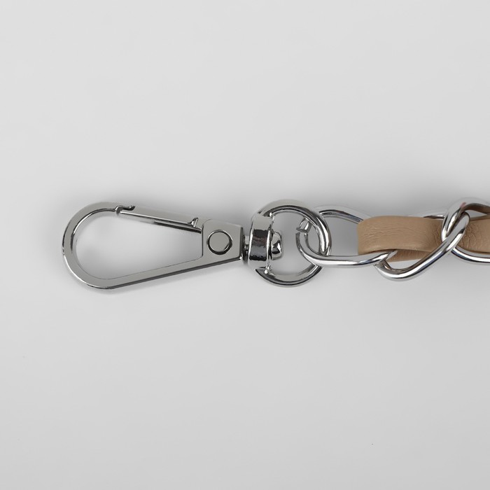 Цепочка с искусственной кожей для сумки, с карабинами, 10×15 мм, 118±3 см, цвет серебряный, бежевый — Характеристики