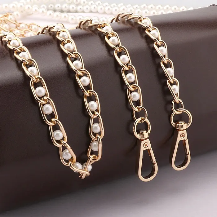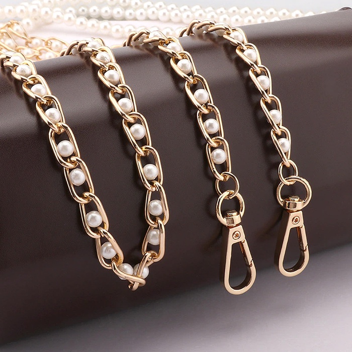 Цепочка с жемчугом для сумки, с карабинами, железная, d=8 мм, 30 см, цвет золотой — Характеристики
