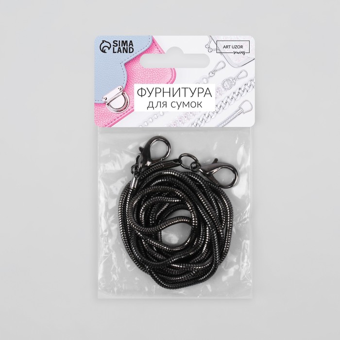 Превратите вашу сумку в стильный аксессуар с нашим изысканным ремешком. Универсальная цепочка с карабинами подходит для любого типа сумок, добавляя нотку элегантности и современности. Изготовлена из прочного железа в изысканном цвете «чёрный никель», она отличается надежностью и долговечностью, подчеркивая ваш уникальный стиль.