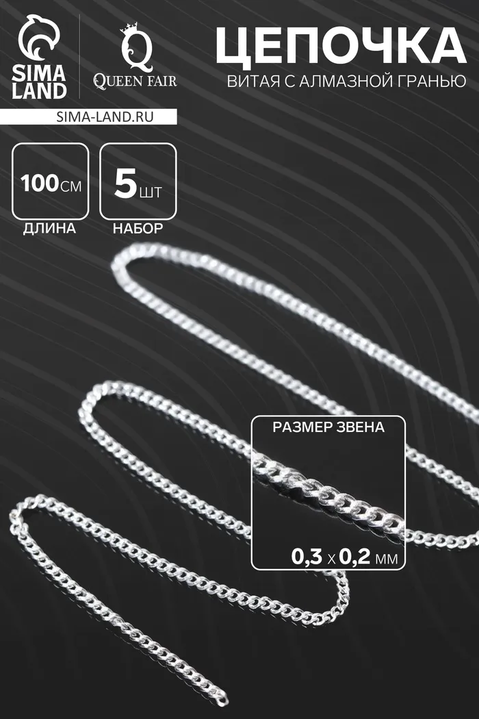 Цепочка витая с алмазной гранью 0,3×0,2 мм (набор 5 шт.) – идеальный аксессуар для создания стильных и оригинальных украшений. Каждая цепочка имеет аккуратную витковую структуру, что придает ей особый блеск благодаря алмазной грани. Цвет серебра добавляет изысканности и элегантности любому изделию.