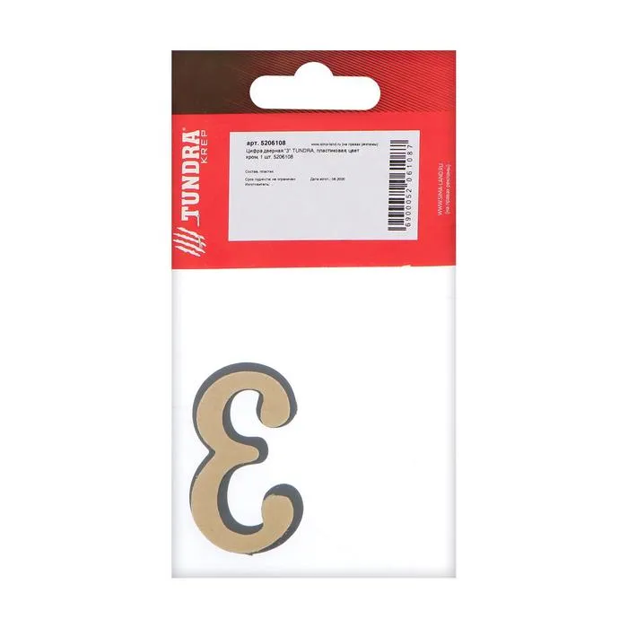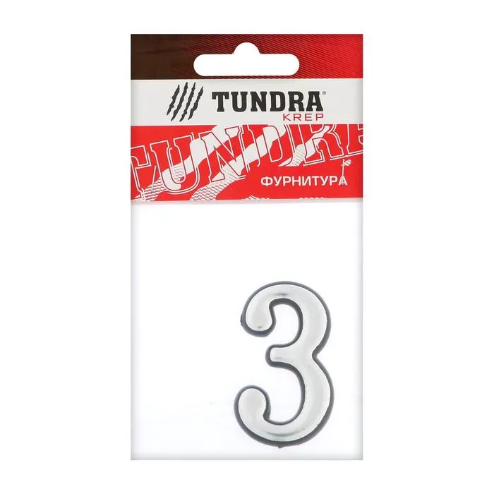 Цифра дверная 3 ТУНДРА, пластиковая, цвет хром, 1 шт. — Характеристики