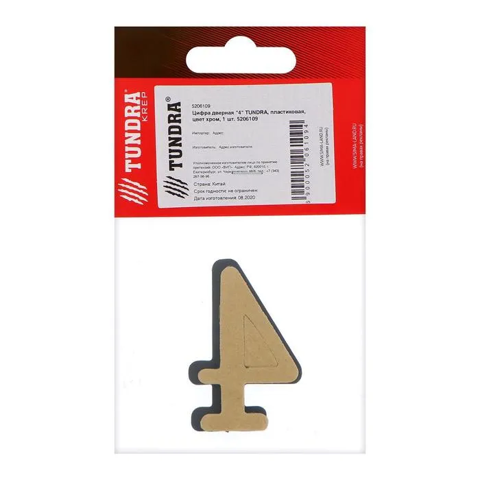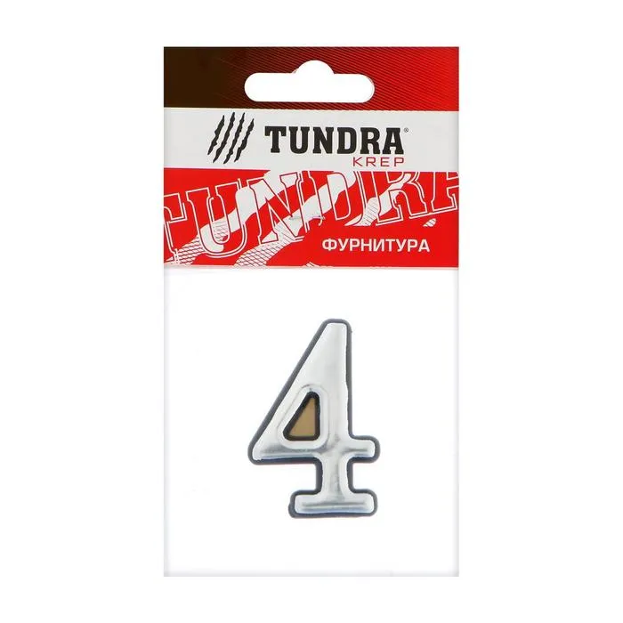 Цифра дверная 4 ТУНДРА, пластиковая, цвет хром, 1 шт. — Характеристики