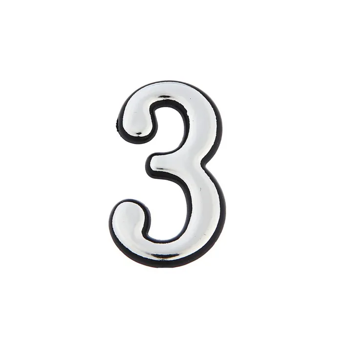 Цифра дверная 3, пластиковая, цвет хром