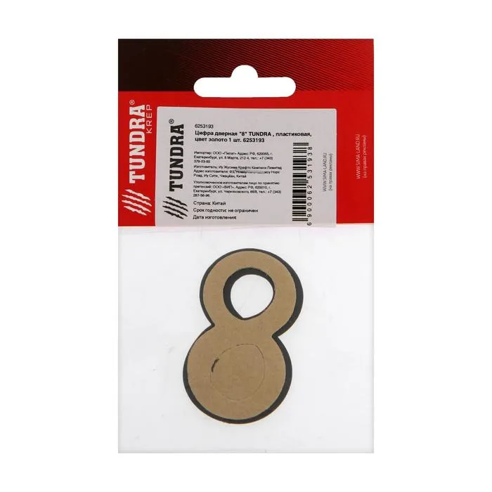 Цифра дверная 8 ТУНДРА, пластиковая, цвет золото 1 шт. — Характеристики