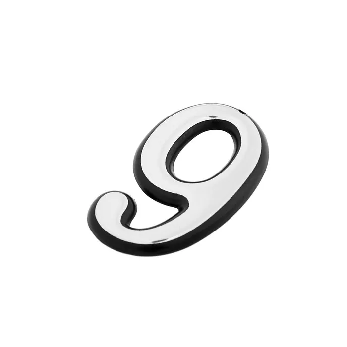 Цифра дверная 9, пластиковая, цвет хром