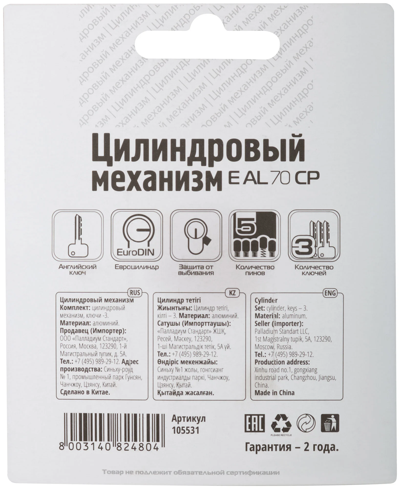 Цилиндровый механизм 70 мм ключ-ключ хром для надежной защиты