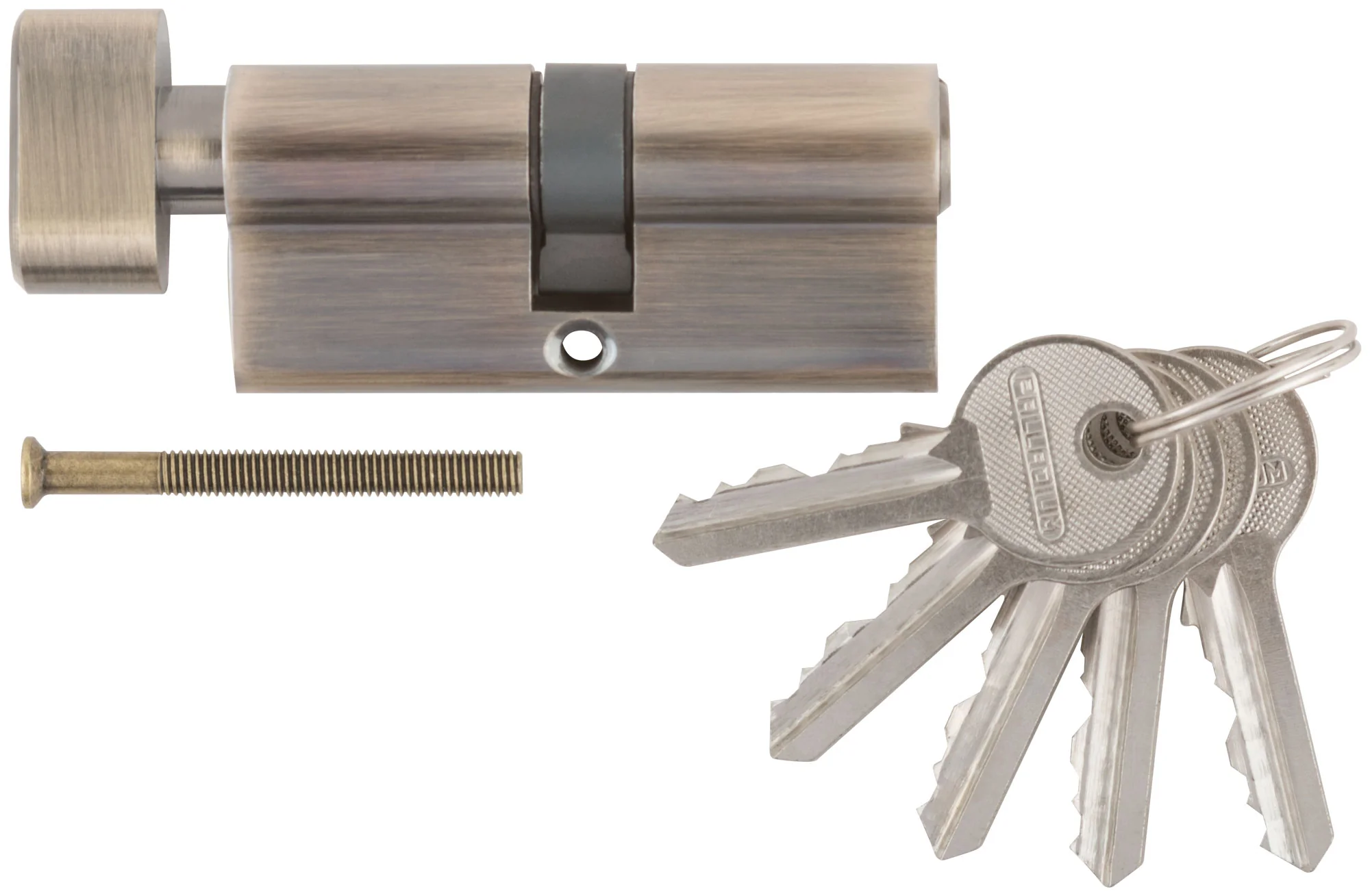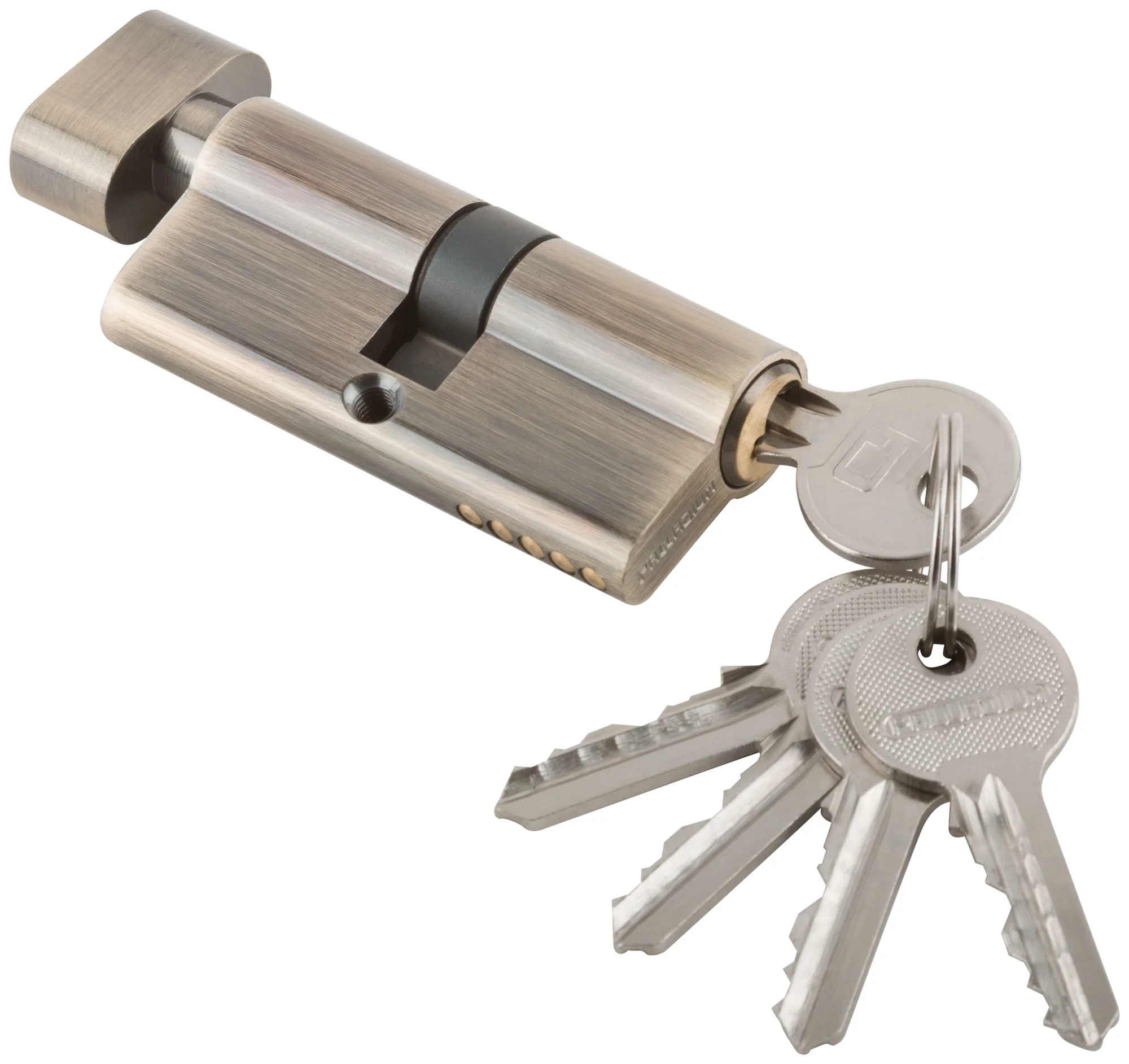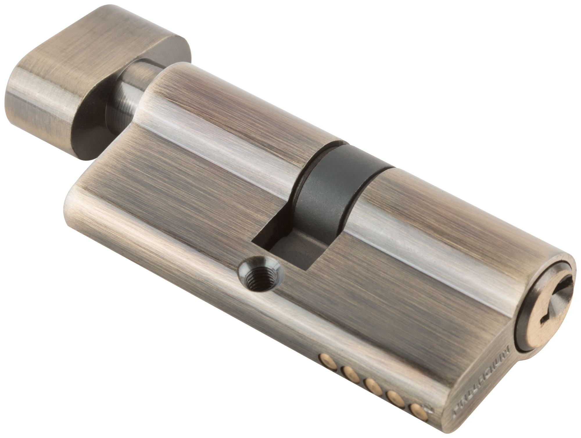 Этот цилиндровый механизм от Palladium обеспечивает надежную защиту и долговечность. Он идеально подходит для установки в двери, где требуется ключ-завертка. Особенность механизма — старая бронза, которая добавит эстетичности и стиля вашему интерьеру.
