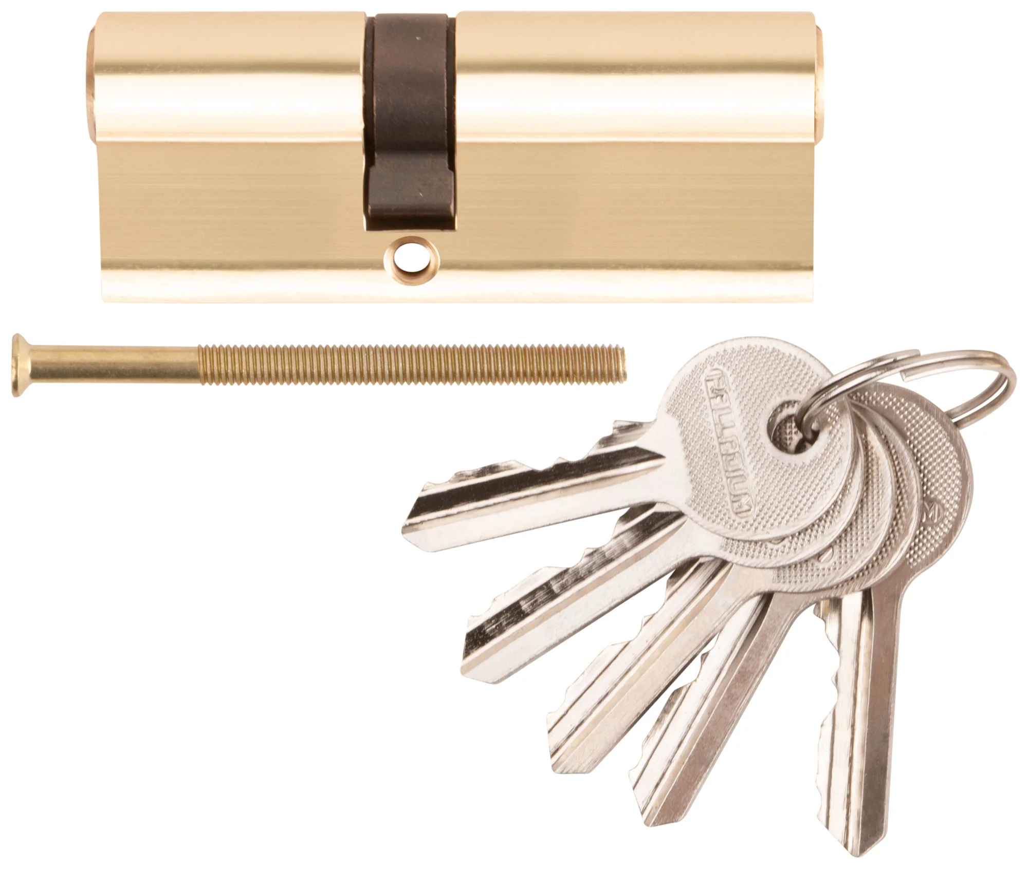 Корпус цилиндра выполнен из латуни, что гарантирует долговечность и стойкость к коррозии. Асимметричный типоразмер 80 мм подходит для большинства стандартных дверей. Пять ключей в комплекте обеспечивают удобство эксплуатации.