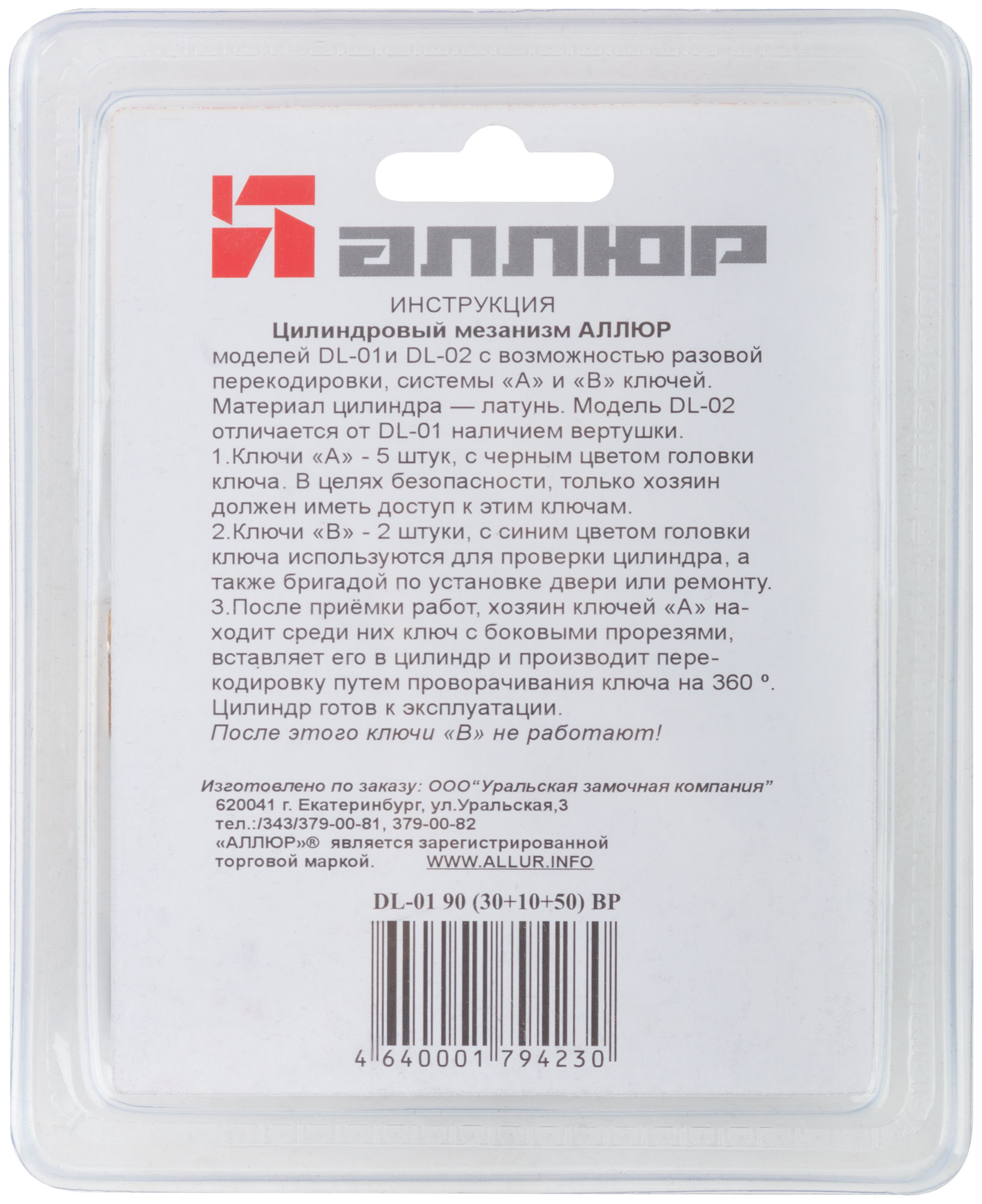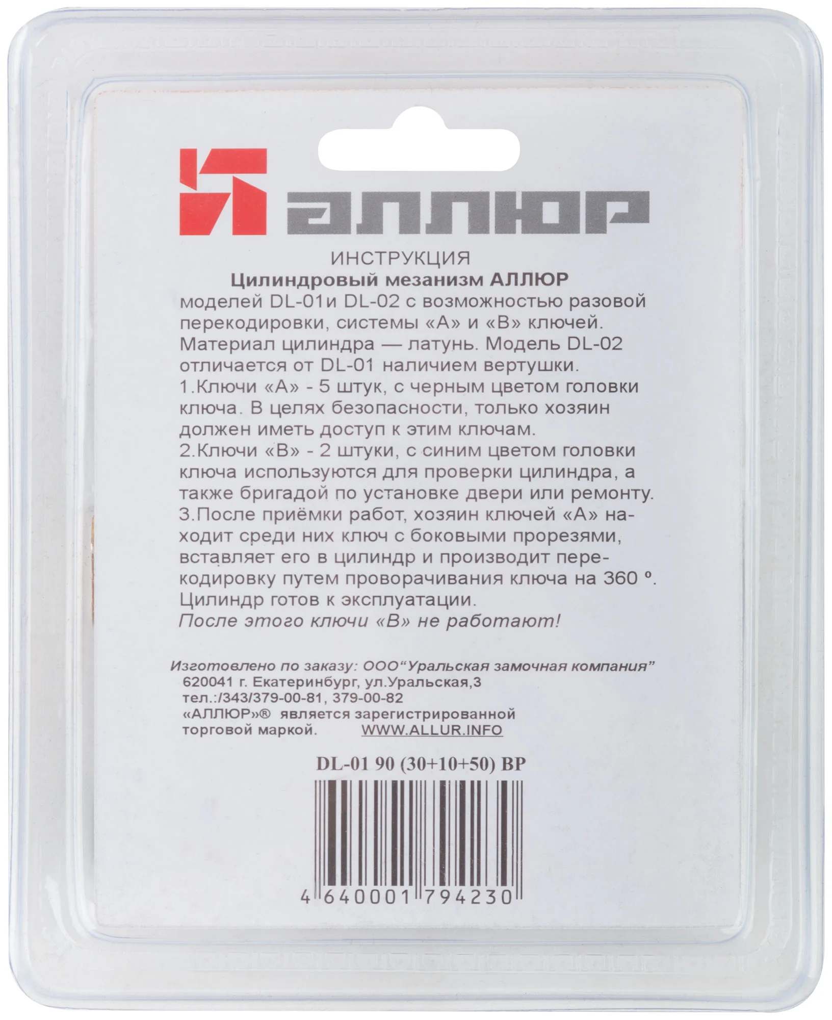 Этот цилиндровый механизм от бренда Аллюр станет незаменимым элементом в обеспечении безопасности вашего помещения. Модель с длиной 90 мм и возможностью перекодировки ключей подходит для установки в двери различных типов и обеспечивает высокий уровень защиты.