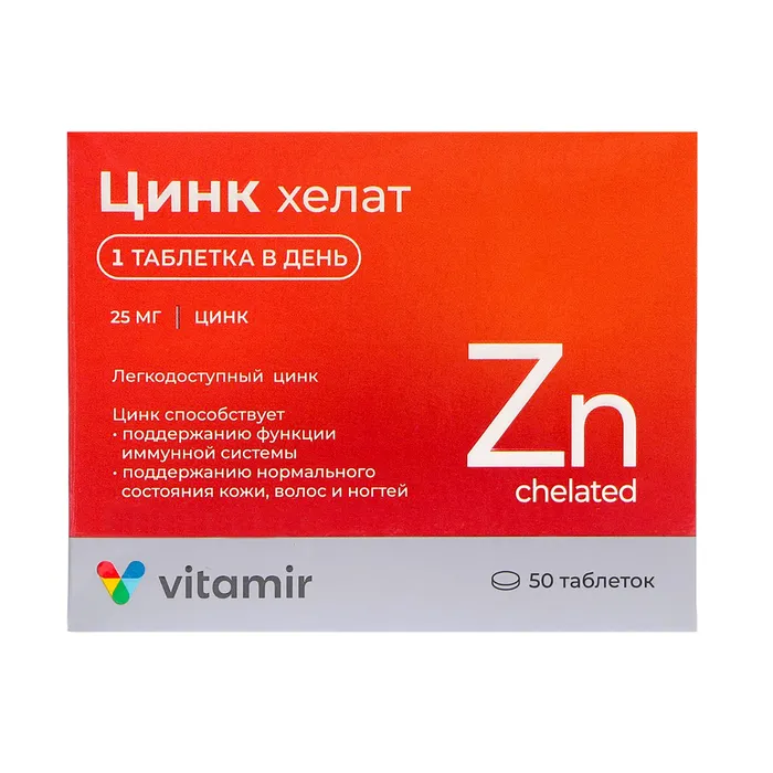«Цинк хелат» - биологически активная добавка к пище, дополнительный источник цинка. Способствует повышению иммунитета, катализирует многие клеточные процессы, является мощным антиоксидантом, входит в состав инсулина, регулирует уровень тестостерона, участвует в формировании костной и хрящевой тканей, способствует их восстановлению.