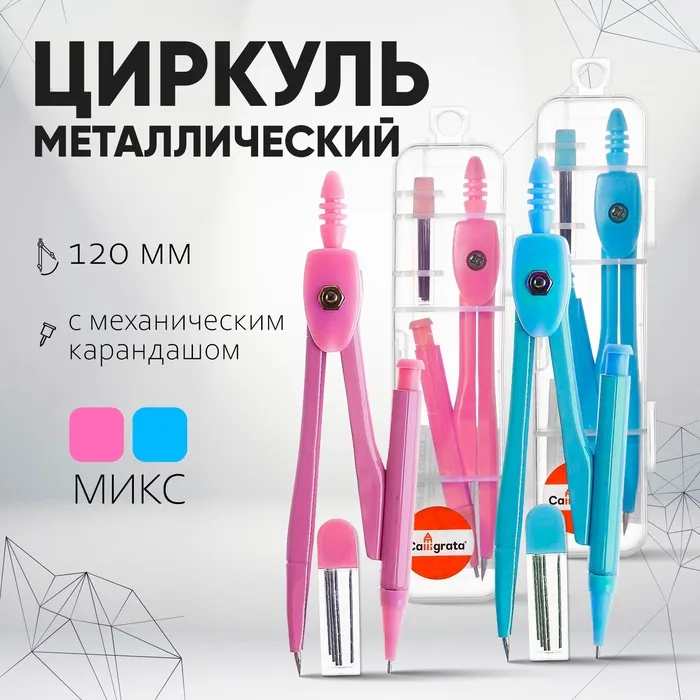Циркуль металлический 120 мм с механическим карандашом, в пластиковом пенале, с грифелями, МИКС — Характеристики