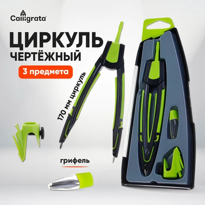 Циркуль металлический/пластиковый в пластиковом пенале с запасными грифелями — Характеристики
