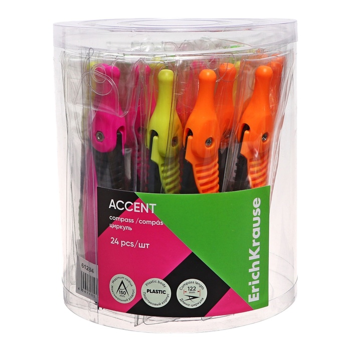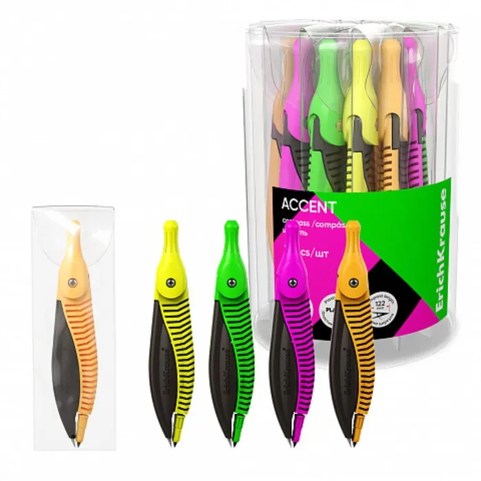 Циркуль пластиковый ErichKrause «Accent», 122 мм, PVC чехол, МИКС — Характеристики