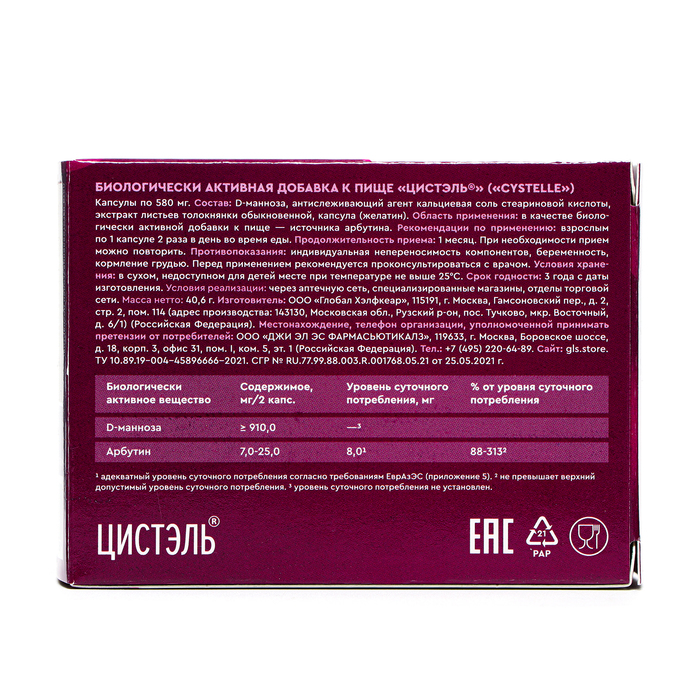 Действие Цистэль определяется активностью компонентов, входящих в его состав: D-маннозы и стандартизированного экстракта листьев Толокнянки.