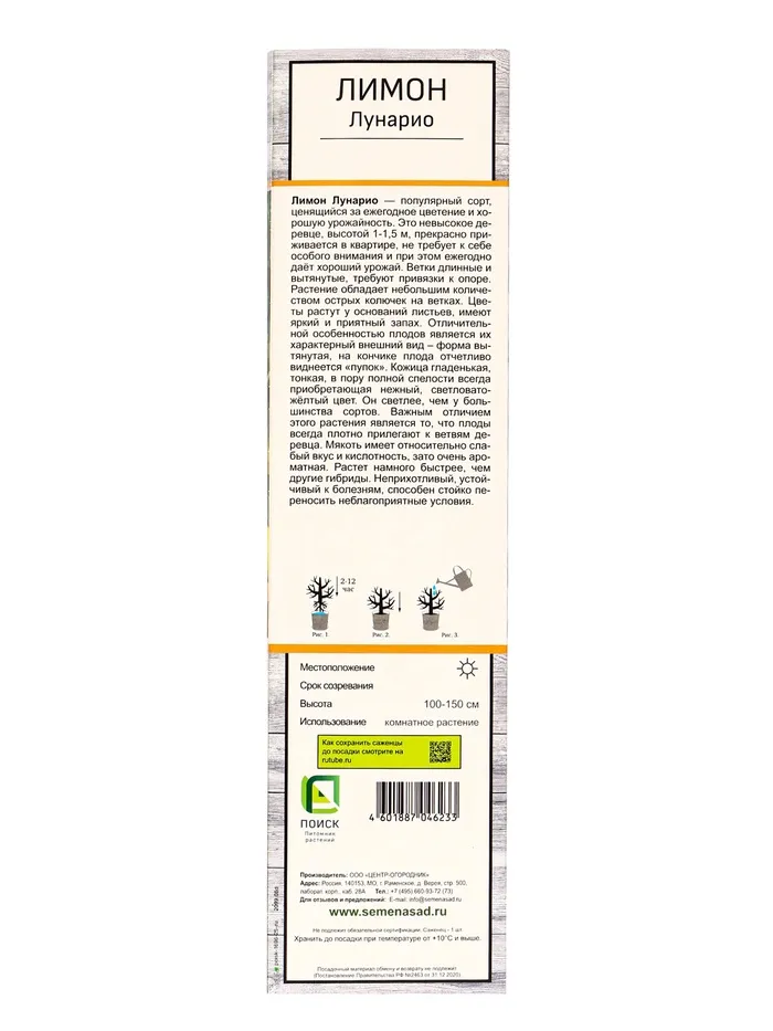 Цитрус «Лимон Лунарио», туба, 1 шт. — Характеристики