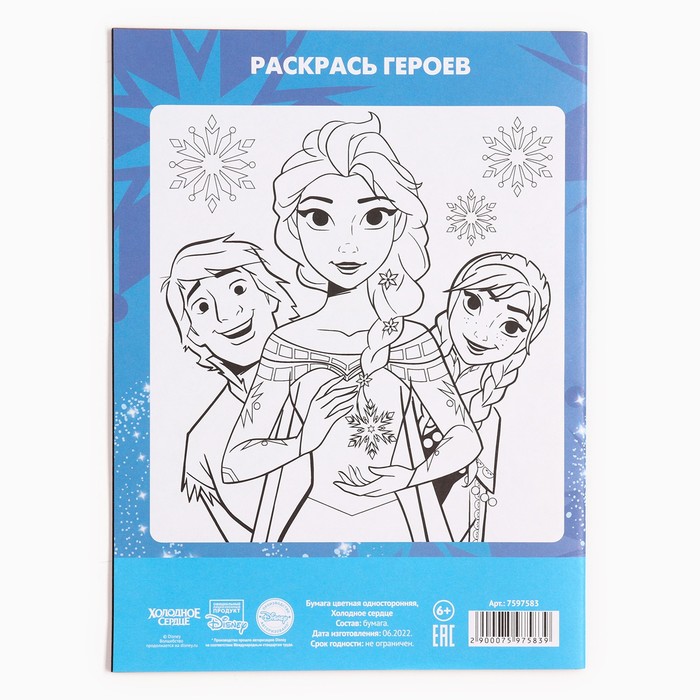 Цветная бумага, А4, 16 листов, 16 цветов, немелованная, односторонняя, на скрепке, 48 г/м², «Холодное сердце» — Характеристики