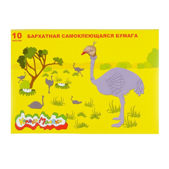Бумага цветная самоклеящаяся бархатная 10 листов, 10 цветов "Каляка-Маляка", 175 х 250 мм