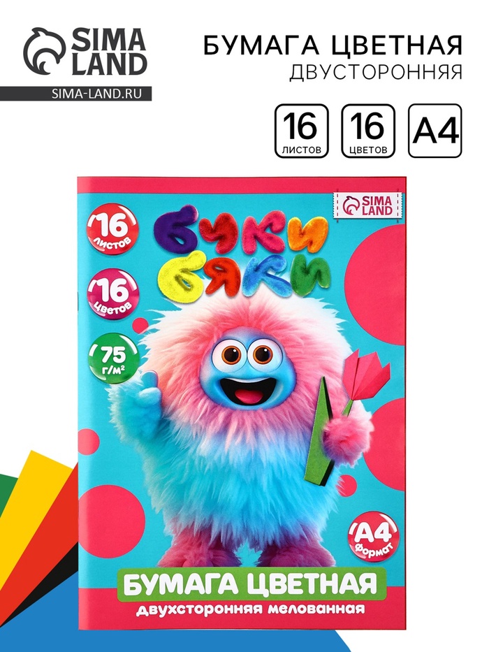 Бумага цветная А4 мелованная 16 л 16 цв двусторонняя БукиБяки