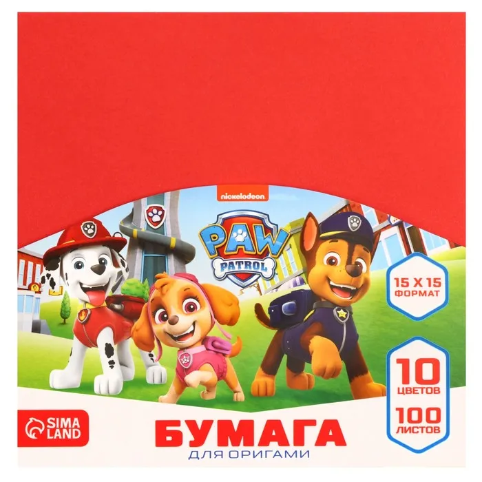 Цветная бумага для оригами, 15×15 см, 100 листов, 10 цветов, немелованная, двусторонняя, в пакете, 80 г/м², «Щенячий патруль» — Характеристики