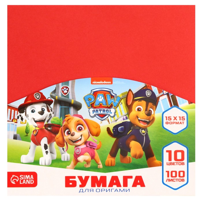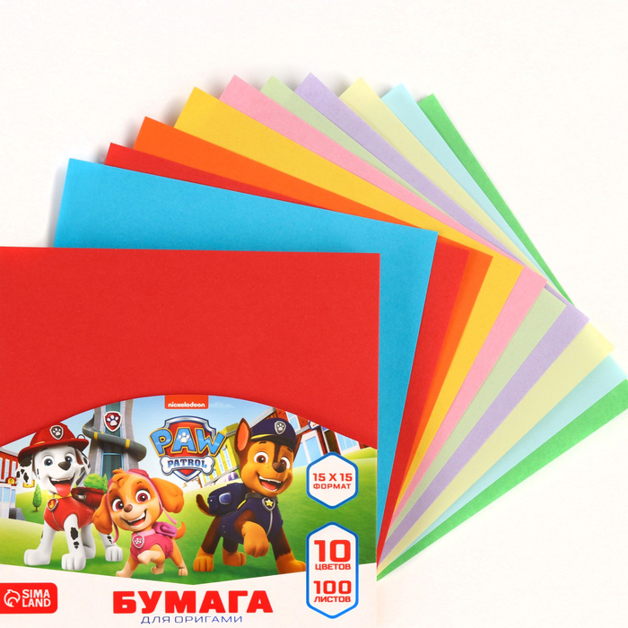 Цветная бумага для оригами, 15×15 см, 100 листов, 10 цветов, немелованная, двусторонняя, в пакете, 80 г/м², «Щенячий патруль»
