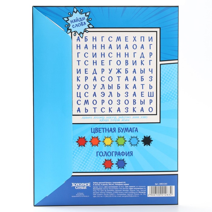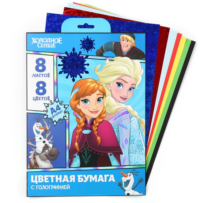 Цветная бумага с голографией А4, 8 листов, 8 цветов, 80 г/м², «Холодное сердце» — Характеристики