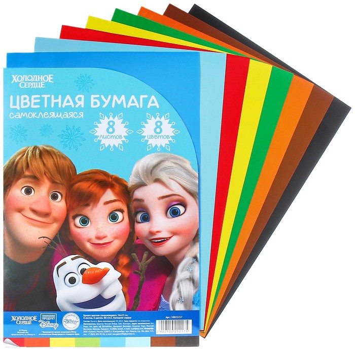 Цветная бумага самоклеящаяся, 16×23 см, 8 листов, 8 цветов, мелованная, односторонняя, в пакете, 80 г/м², «Холодное сердце» — Характеристики