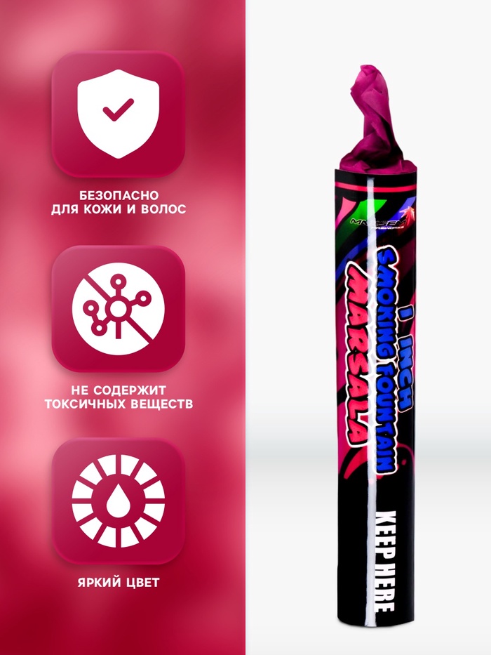 Цветной дым винный, 0.8 дюйм, ОПТИ, средняя интенсивность, 60 сек — Характеристики