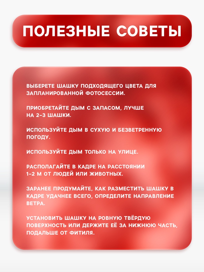 Цветной дым — это пиротехническое изделие, создающее красивые цветные облака для привлечения внимания, организации фотосессий, корпоративных мероприятий и гендер-пати. Он прост в использовании, безопасен для кожи и волос, не содержит токсичных веществ.
