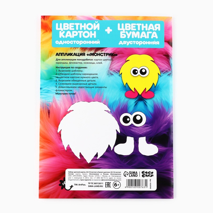 Цветной картон 10 листов 220 г/м² односторонний и цветная бумага, 16 листов двусторонняя А4 — Характеристики