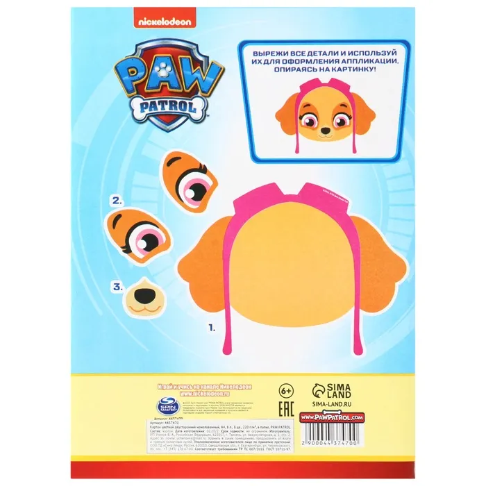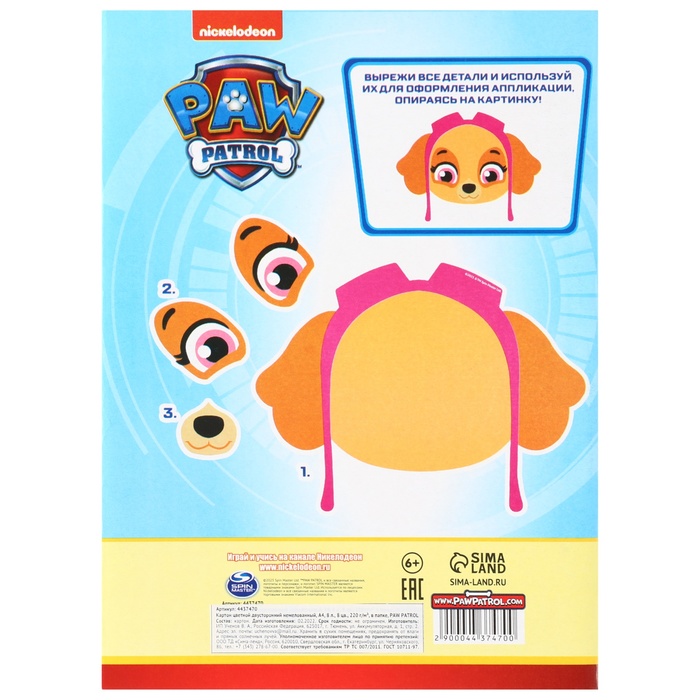 Цветной картон, А4, 8 листов, 8 цветов, немелованный, двусторонний, в папке, 220 г/м², «Щенячий патруль» — Характеристики