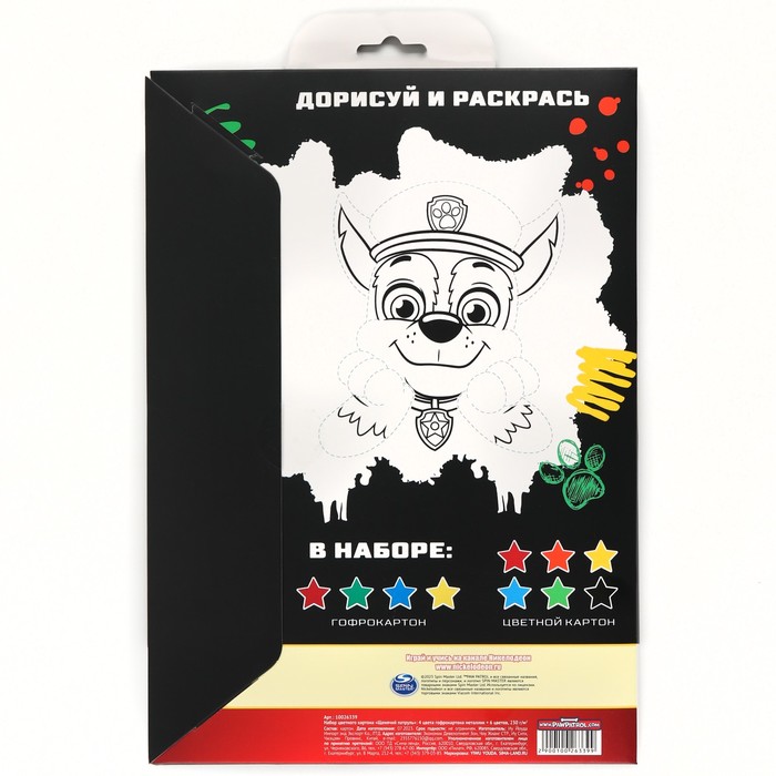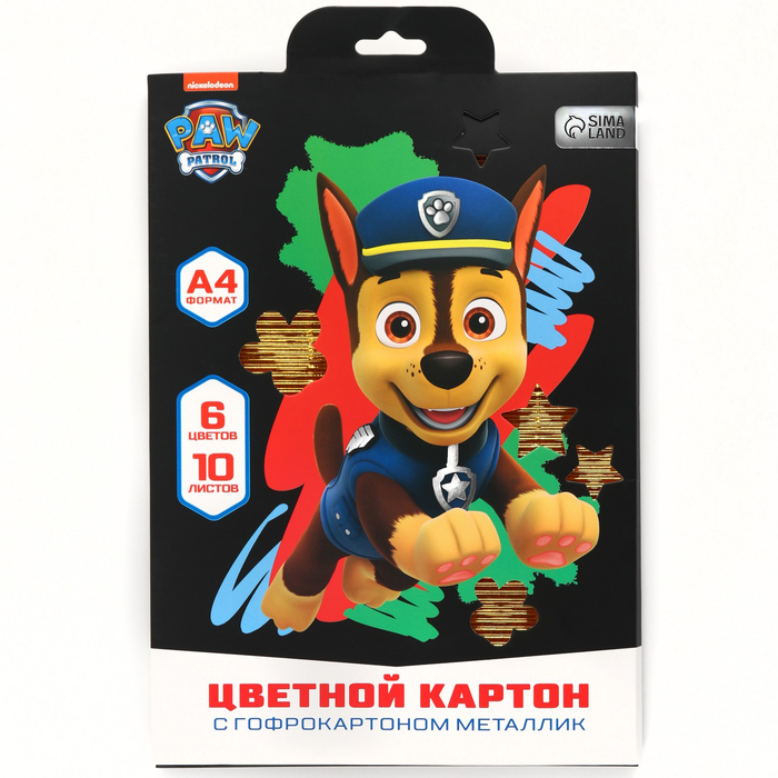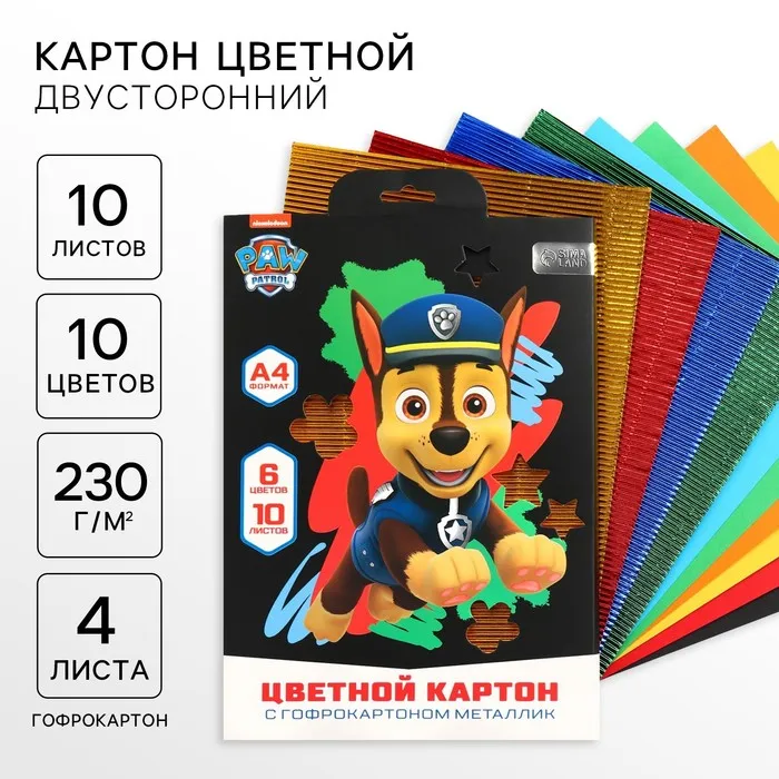 Цветной картон гофрированный, А4, 10 листов, 10 цветов, немелованный, двусторонний, в папке, 230 г/м², «Щенячий патруль» — Характеристики