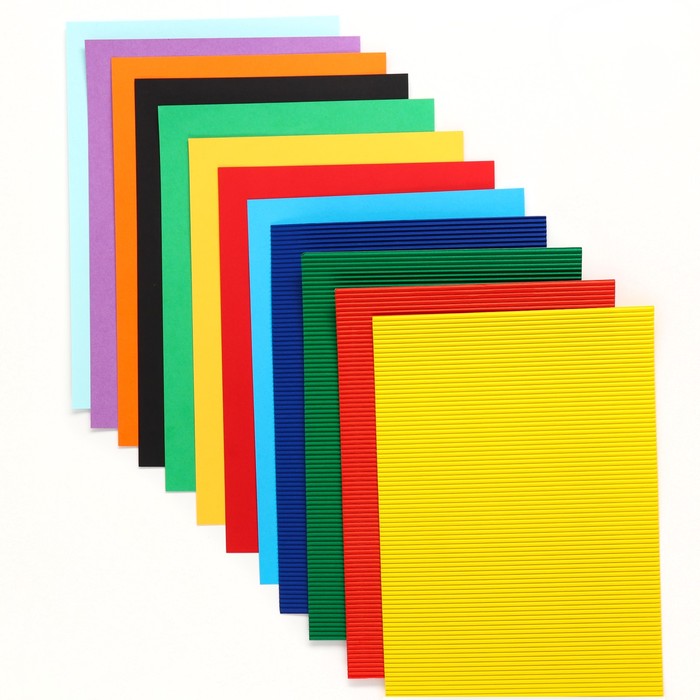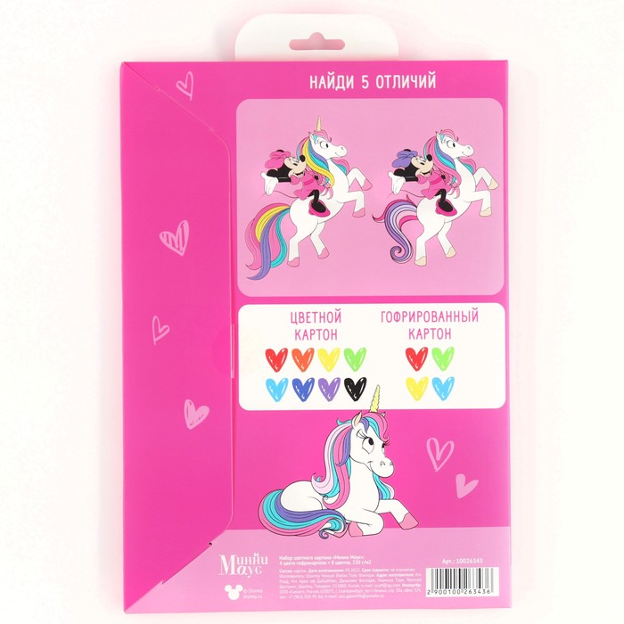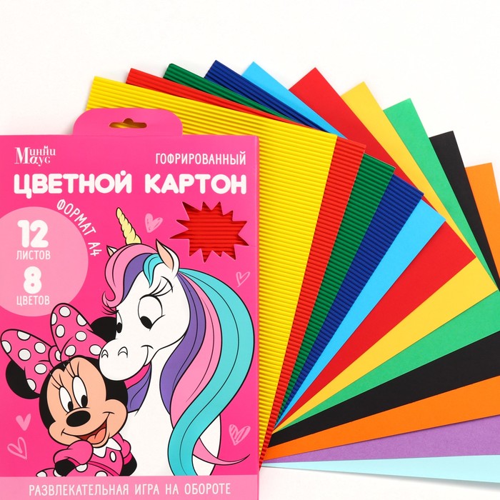 Цветной картон гофрированный, А4, 12 листов, 12 цветов, немелованный, двусторонний, в папке, 230 г/м², «Минни Маус и единорог» — Характеристики