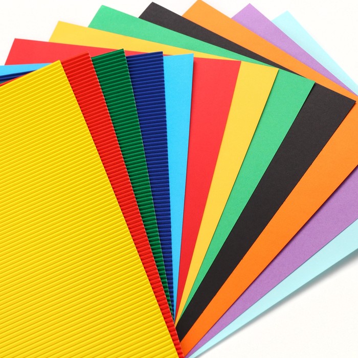 Картон цветной гофрированный А4, 10 листов, 10 цветов