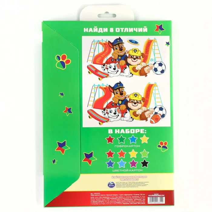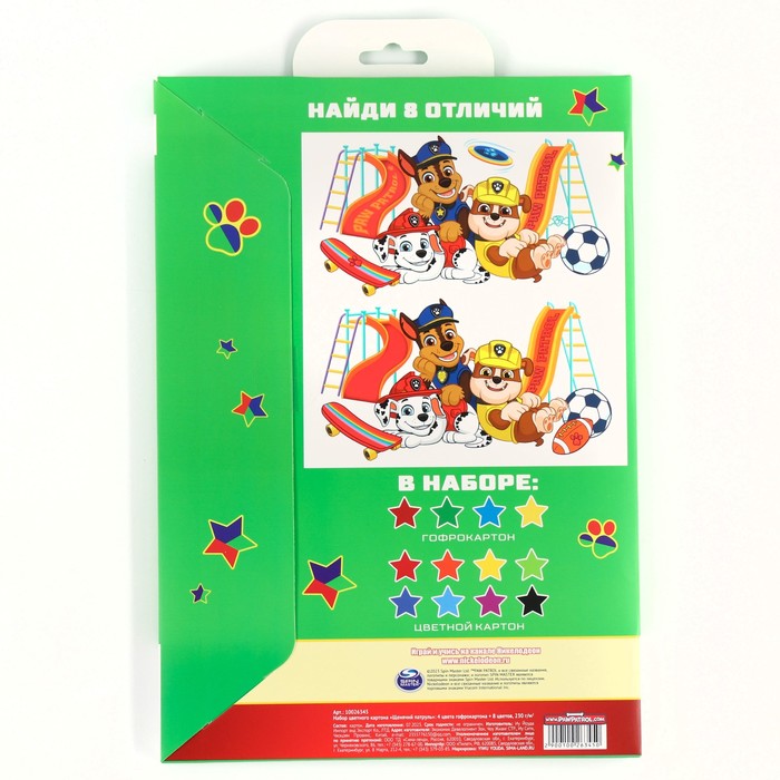 Цветной картон гофрированный, А4, 12 листов, 12 цветов, немелованный, двусторонний, в папке, 230 г/м², «Щенячий патруль» — Характеристики