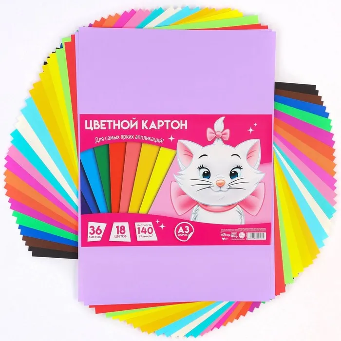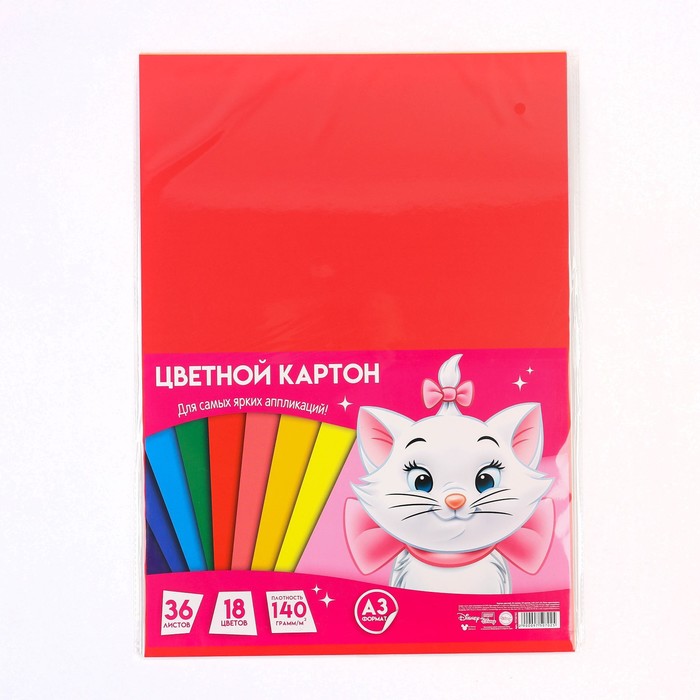 Цветной картон тонированный, А3, 36 листов, 18 цветов, немелованный, двусторонний, в пакете, 140 г/м², «Коты аристократы» — Характеристики