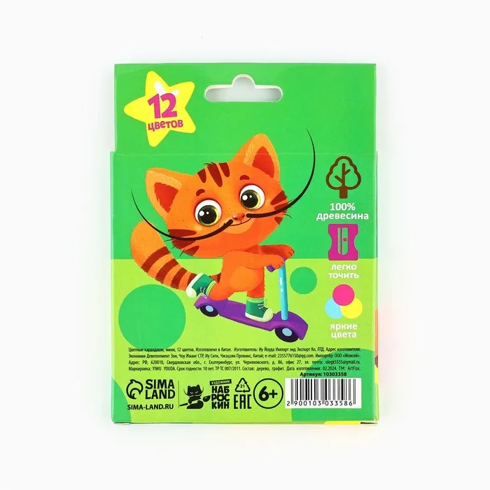 Цветные карандаши 12 цветов мини деревянные заточенные — Характеристики