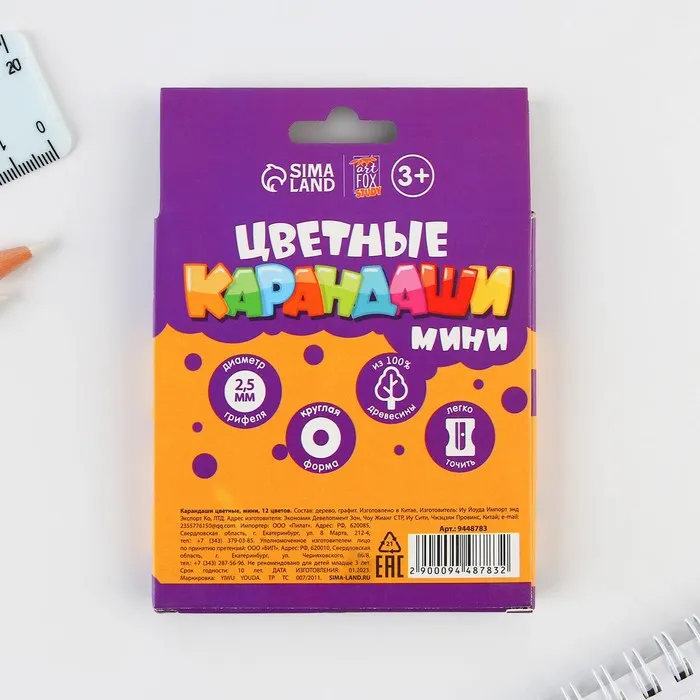 Цветные карандаши 12 цветов мини заточенные круглые деревянные — Характеристики