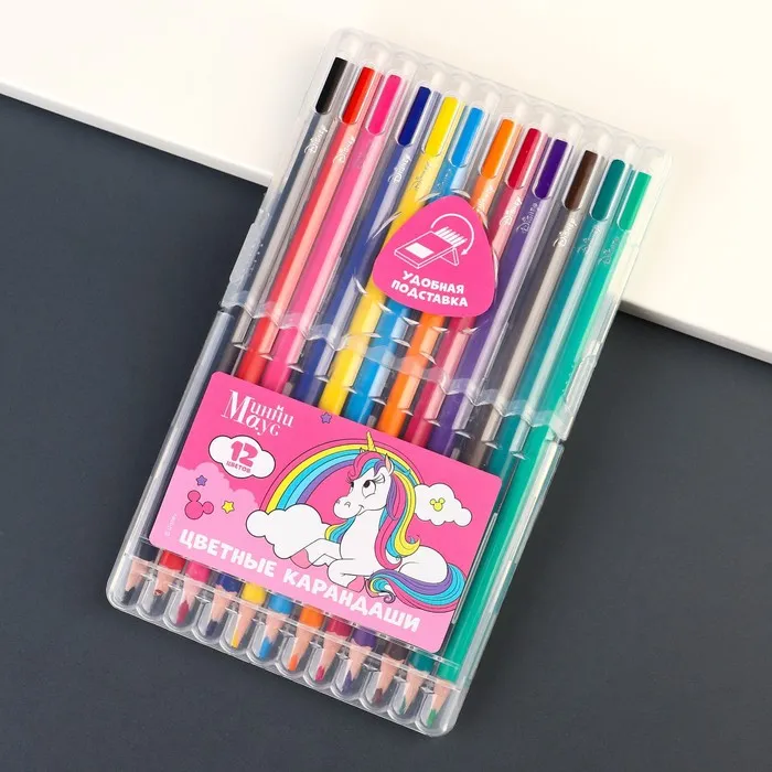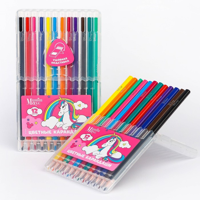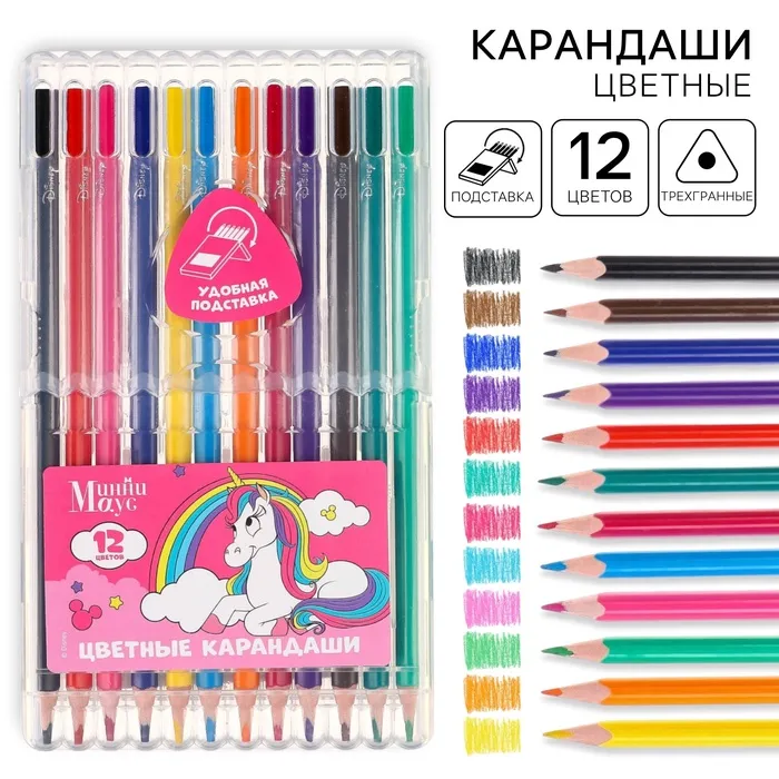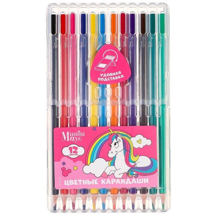 Цветные карандаши, 12 цветов, трехгранные, «Минни Маус и единорог» — Характеристики