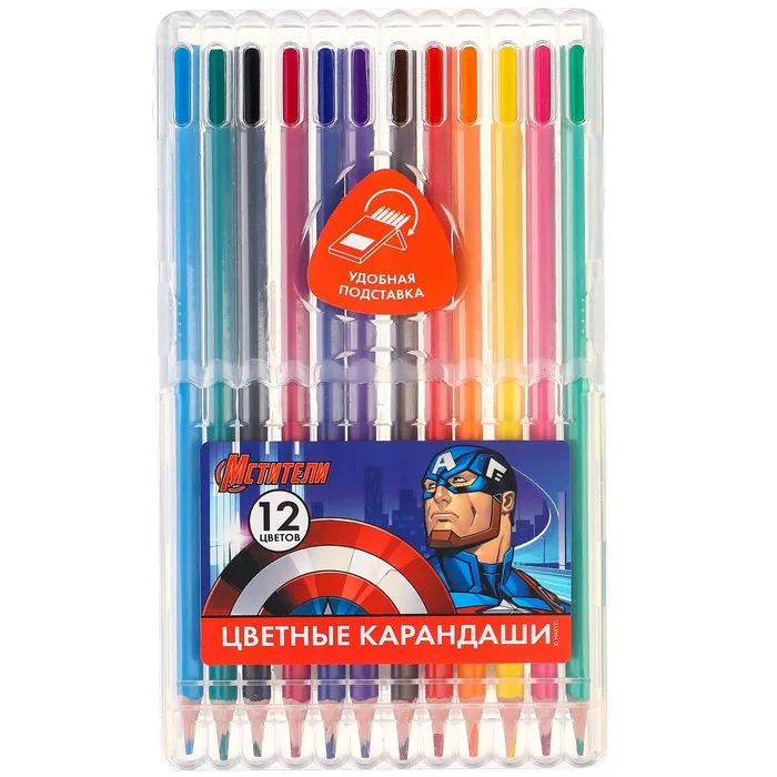 Цветные карандаши, 12 цветов, трехгранные, «Мстители» — Характеристики