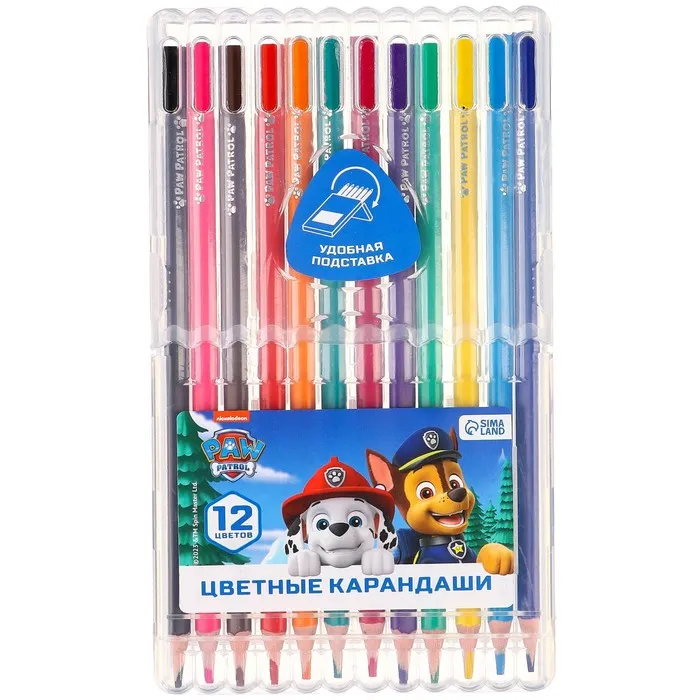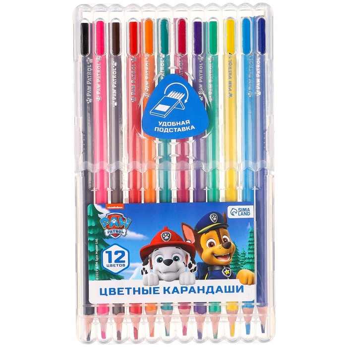Цветные карандаши, 12 цветов, трехгранные, «Щенячий патруль» — Характеристики