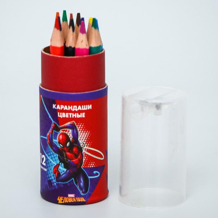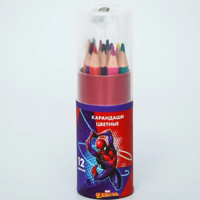 Цветные карандаши, 12 цветов, трехгранные, в тубусе, «Человек-паук» — Характеристики