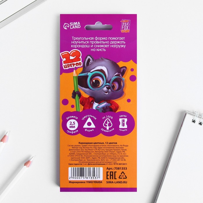 Цветные карандаши 12 цветов заточенные трехгранные деревянный корпус — Характеристики