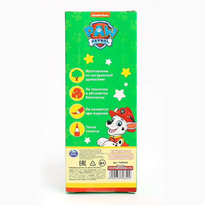 Цветные карандаши, 18 цветов, трехгранные, «Щенячий патруль» — Характеристики